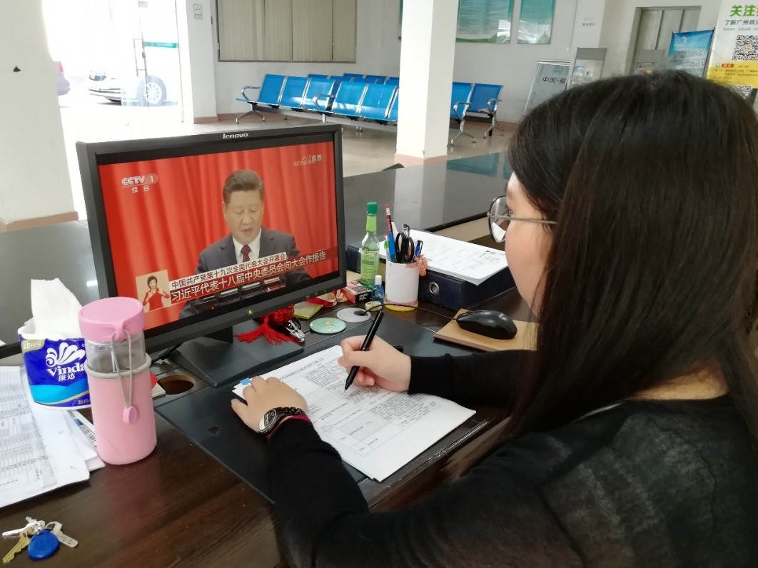 我系党总支高度重视中央办公厅、省委有关要求和我校党委的部署,经研究决定,在不影响正常教学、工作秩序的前提下,组织我系广大党员干部和优秀青年收听收看十九大报告并进行学习讨论。18日上午9:00,我系各教师党员、学生党员、发展对象、入党积极分子等18名成员准时在系会议室内集中收看中国共产党第十九次全国代表大会开幕会。收看期间,我系师生认真听取习近平总书记代表党的十八届中央委员会向大会作的报告,勤做笔记,讨论学习,现场学习气氛浓厚。