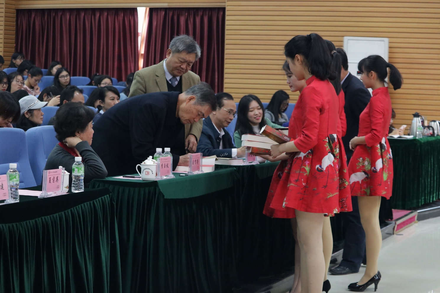 图6 麦贤得英雄和王国梁同志为新华学院签名赠书