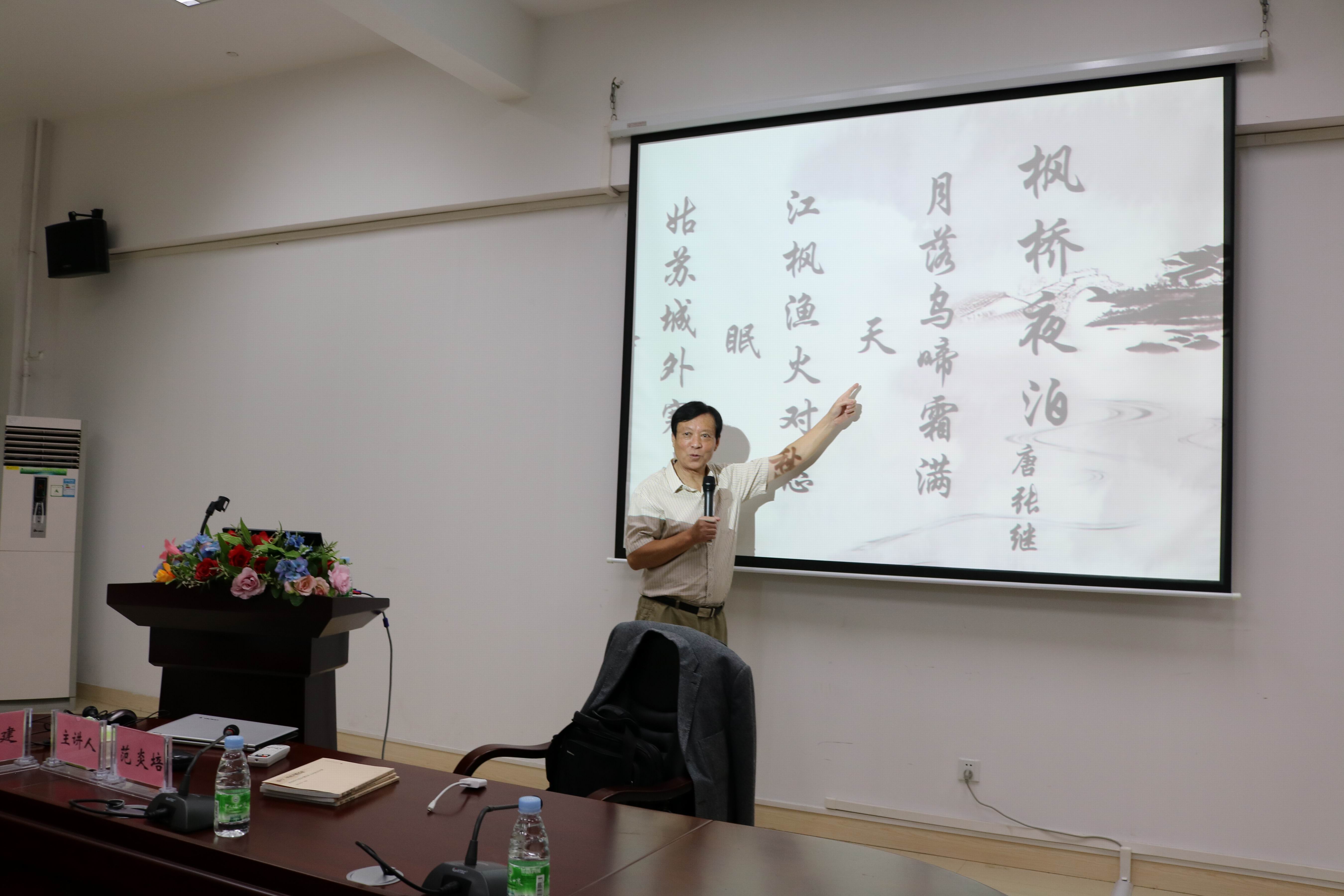 11月18日晚19时30分,常州市社会科学院历史文化研究所研究员、常州市吟诵艺术协会学术委员会副主任范炎培应我院邀请,于格物楼②-A208开展“吟诵漫谈”主题讲座。我系副主任李铭建、校内外众多吟诵爱好者参加了此次讲座。