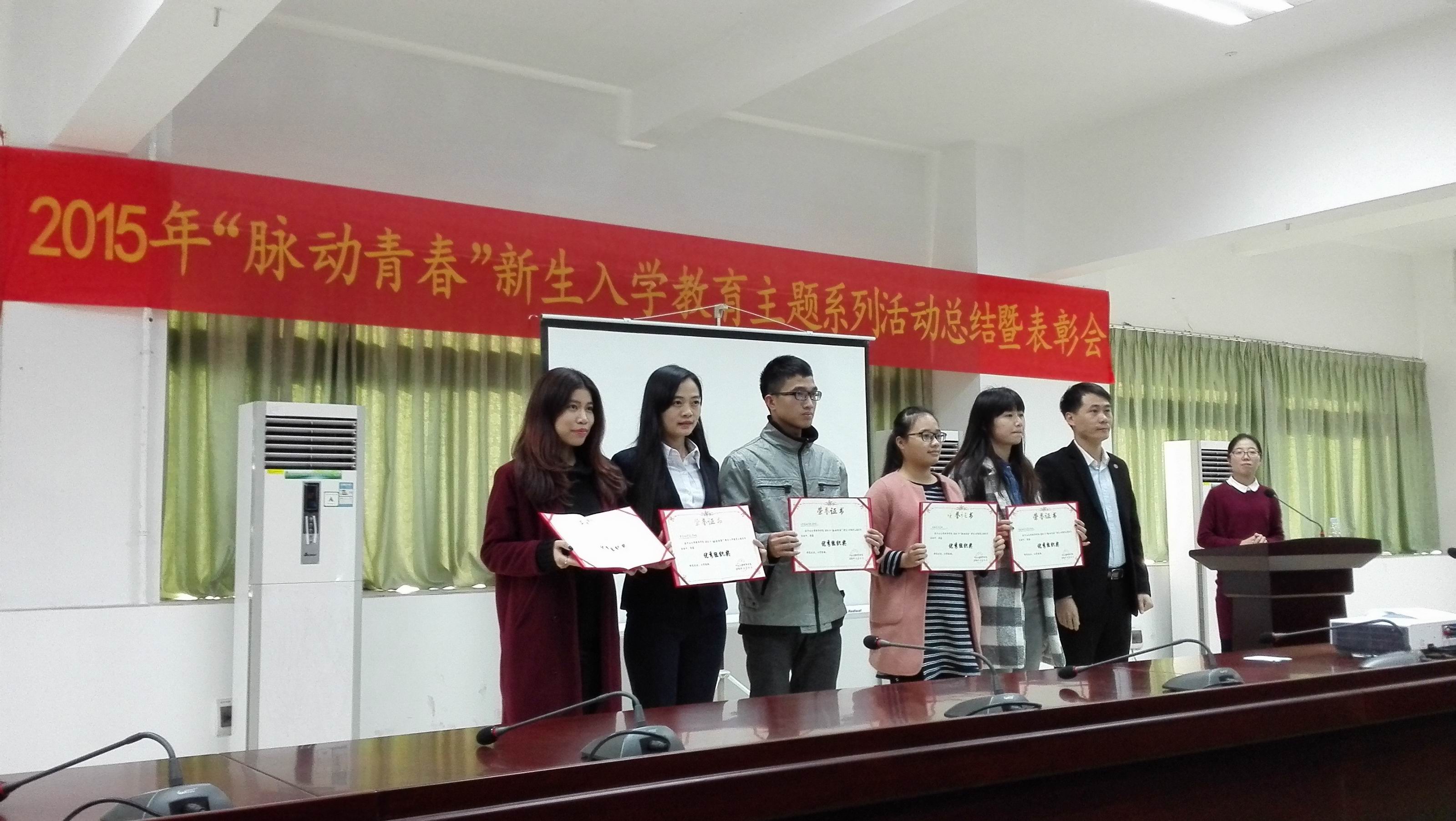 12月31日下午3:00,学院2015年“脉动青春”新生入学教育主题系列活动成果总结暨表彰会在格物楼2-A208举行。在总结表彰会中,各活动承办单位分别作了汇报发言,并由学院学生工作部对表现突出的5个单位和7位指导老师进行了表彰。