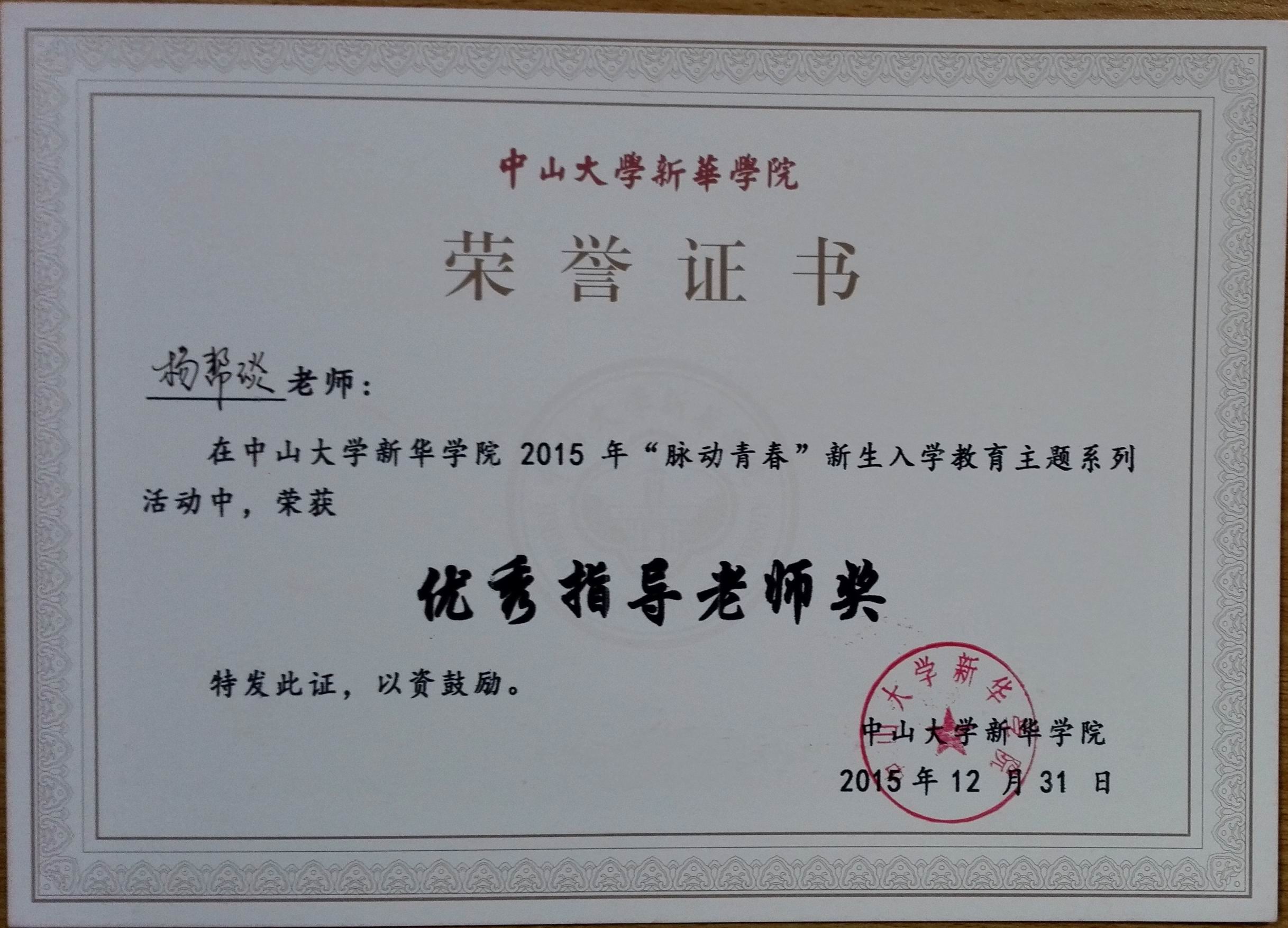 图4 杨帮琰老师获得“优秀指导老师奖”