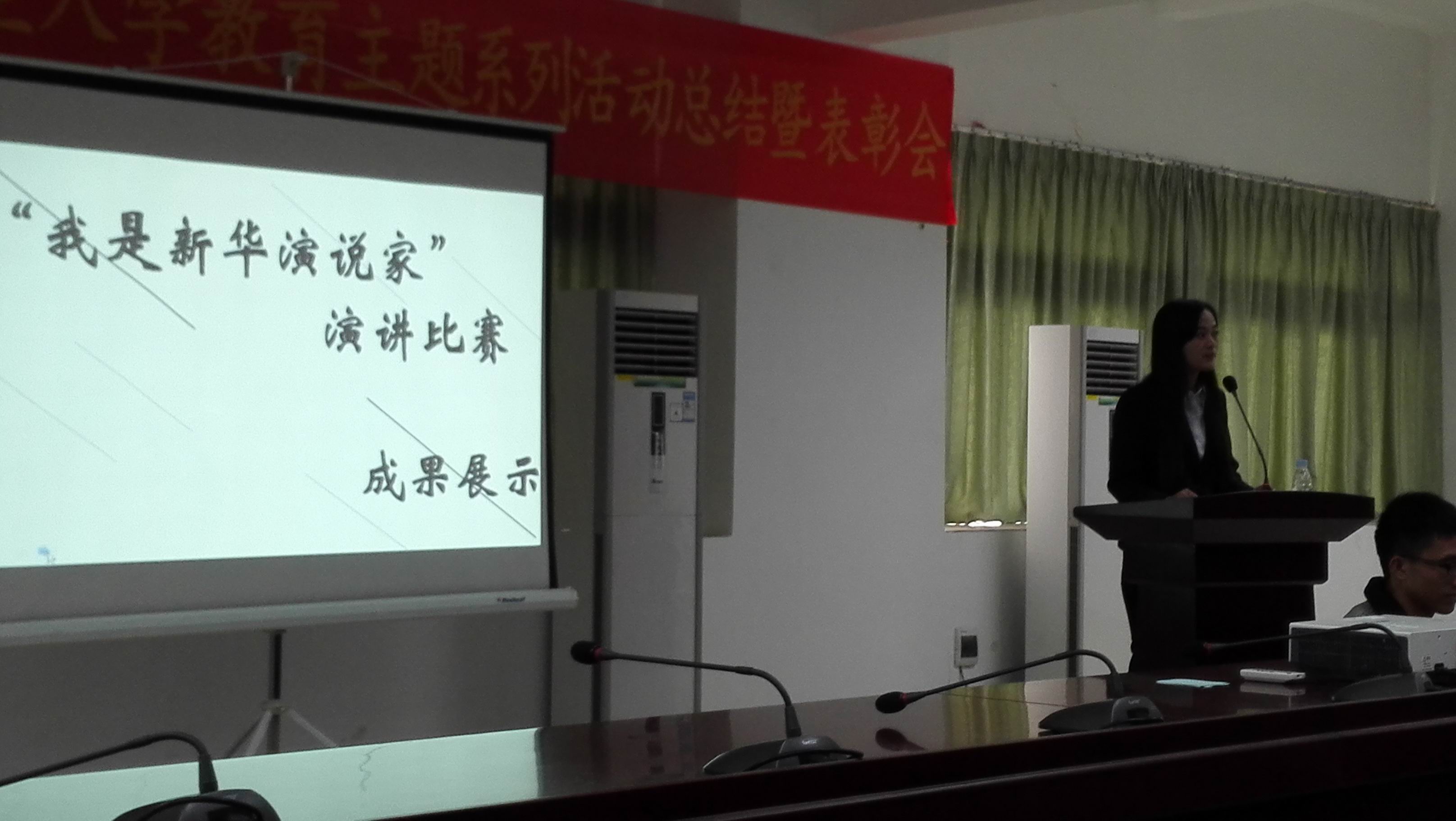 图1 系学生会副主席张秀琪同学上台做演讲比赛总结汇报