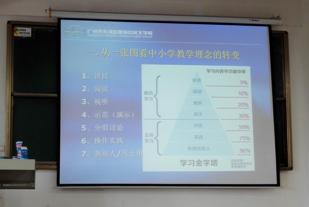 图3 谢校长讲解从“学习金字塔”看中小学教学理念的转变