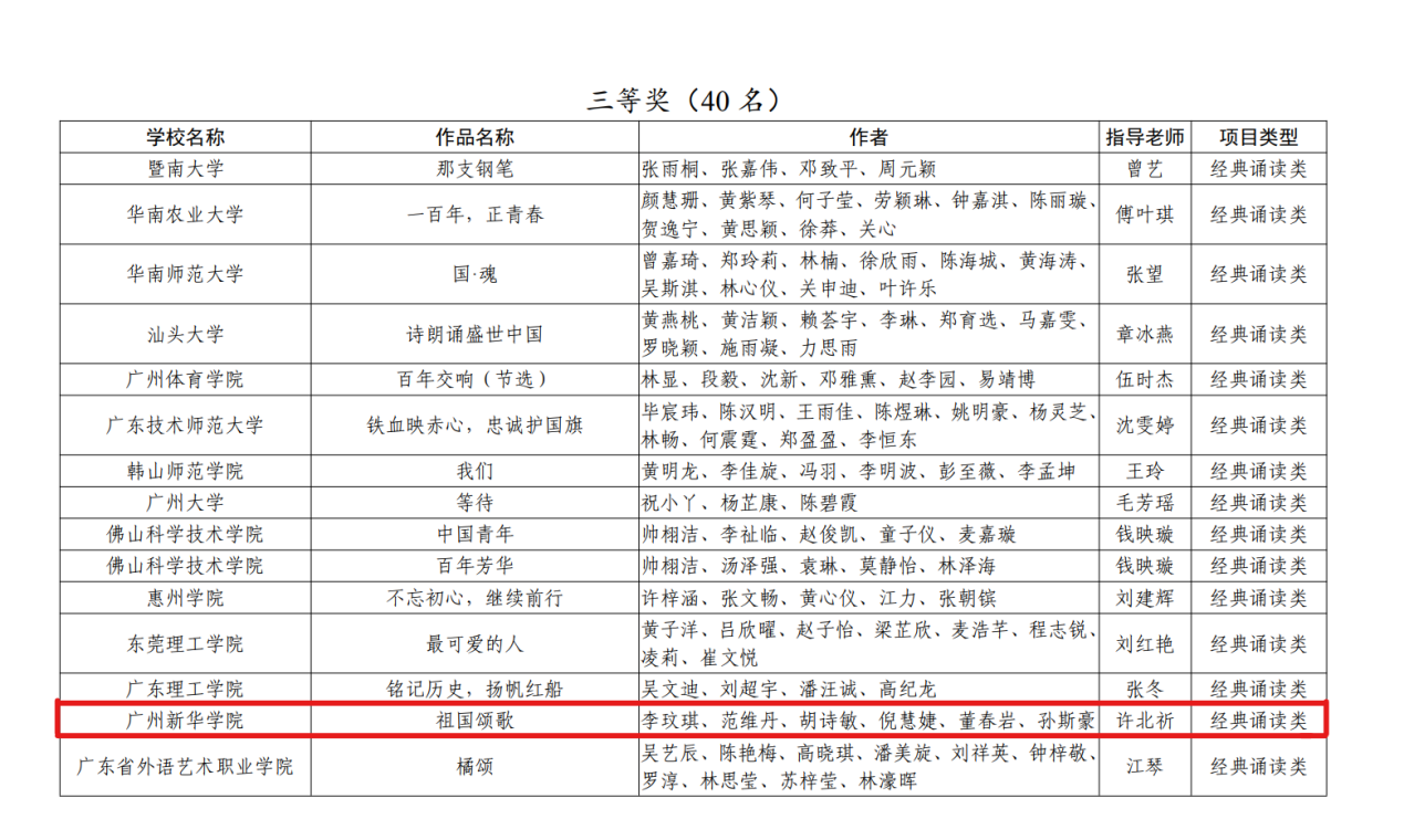 3月31日,广东省教育厅下发《关于公布2021年“立志·修身·博学·报国”主题教育系列活动结果通知》(粤教思函〔2022﹞6号),经过层层选拔,我系师生作品《祖国颂歌》荣获经典诵读类三等奖。