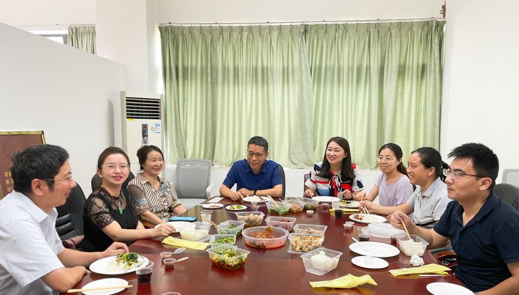 午餐会上,与会教师一方面结合粤港澳大湾区非遗文化的发展与个人的学术专长和学术经验,充分挖掘粤港澳大湾区文学资源,确定团队下半年工作重点;另一方面,就个人最新科研进展及面临的问题,密切交流科研方法。与会教师边吃边聊,在味蕾的享受中进行了一场“头脑风暴”。会后,宋俊华感谢与会教师的踊跃参与、大胆献策,鼓励与会教师共同努力,齐心推动粤港澳大湾区文学与文化研究团队发展。