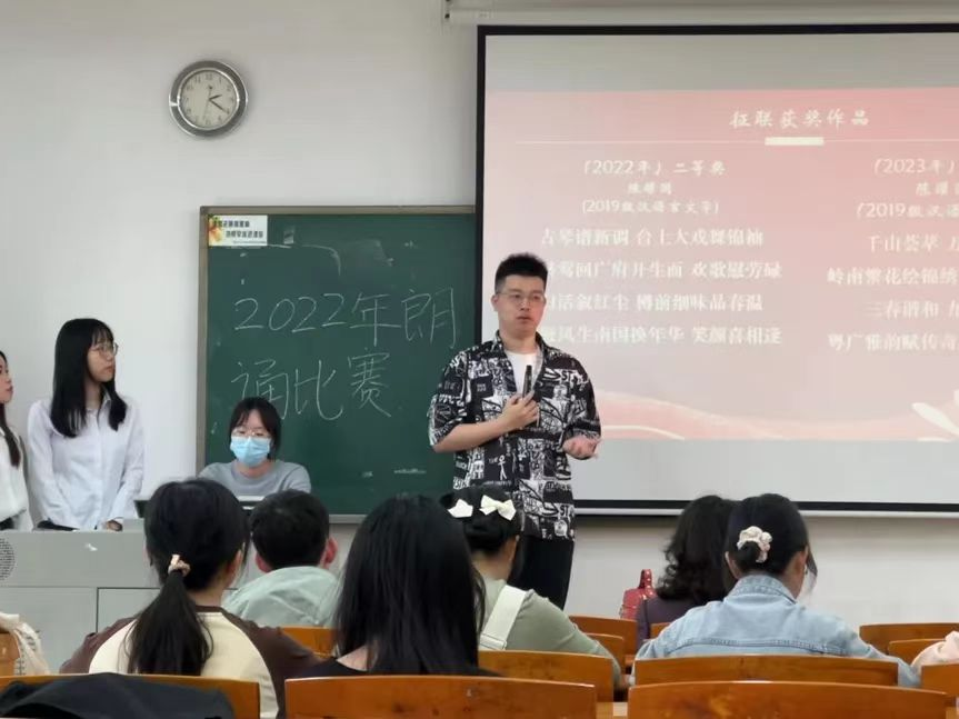 春风贺喜无言语,排比花枝满校园。万物复苏必有时,疫去安来春可期!在这疫情封控放开,万物复苏,天空沉静、草木萌动的三月,因受疫情影响而延迟的2022年朗诵比赛以及2022、2023年征联比赛颁奖典礼,于2023年3月8日下午三点十分在定静楼2-A205圆满落幕!