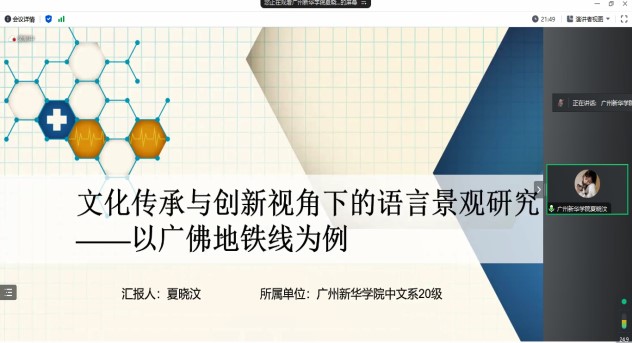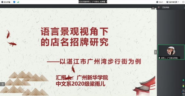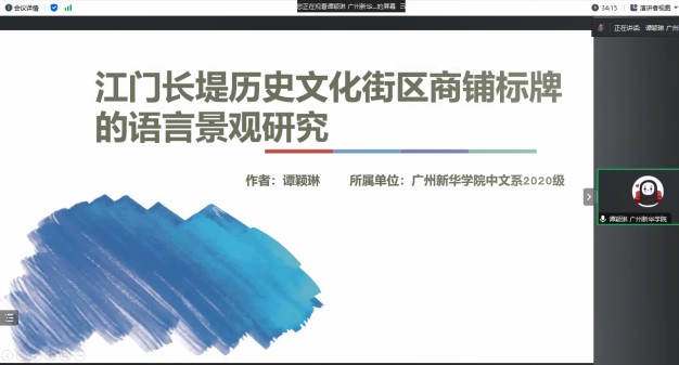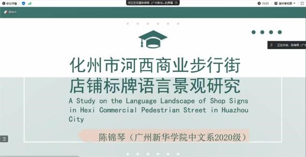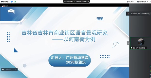 本次年会参会者中仅有11名本科生,因受到时间、经费等因素的影响,我系6位同学均为线上参会并在“语言景观”或“语言政策和语言教育”小组报告会宣读了论文。小组报告会点评专家夏历教授(沈阳师范大学)认为同学们的研究基础扎实,同时指出了目前语言景观研究存在的一些共性问题;小组报告会点评专家王立群教授(江苏工程职业技术学院)对同学们的选题和研究内容进行了充分的肯定,并指出在研究深度和结合地域文化特色方面还有进一步优化的空间。通过此次锻炼,6位同学收获颇丰,对科研有了更深刻的理解和体验。