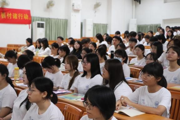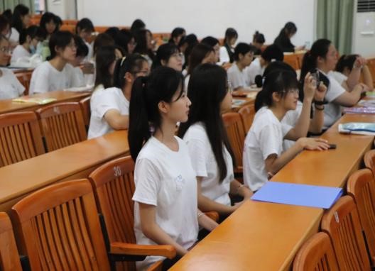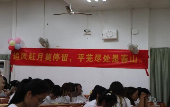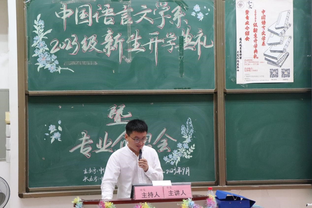 最后,辅导员陈飞翔老师向新生致辞:大学是知识的殿堂,躺平不可取,躺赢不可能。每位同学应保持乐观、清醒、积极的心态,好好学习,参加社团组织活动,成为才华横溢、品德高尚的人。