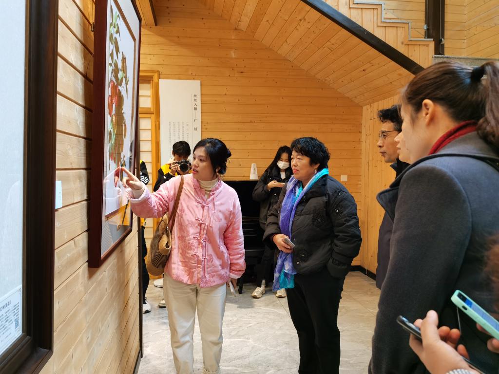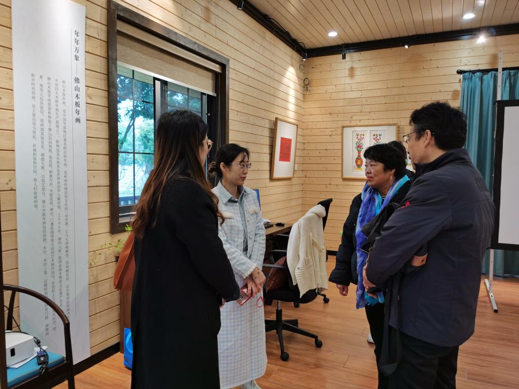 听取讲解时,陈杭从观众角度出发,询问东莞市非遗潮绣传承人蔡小苹该如何向观众讲解和宣传非遗文化,强调传承人等专业人士在非遗文化宣传工作中的重要性。除此之外,陈杭还向现场工作人员询问了霖霖书院的运营情况,了解书院的展览工作,明确校园办展的优势和局限性,对我校霖霖书院把陶瓷、广绣、佛山剪纸、佛山木版画等非遗作品引入校园展示表示了高度的肯定和赞扬。