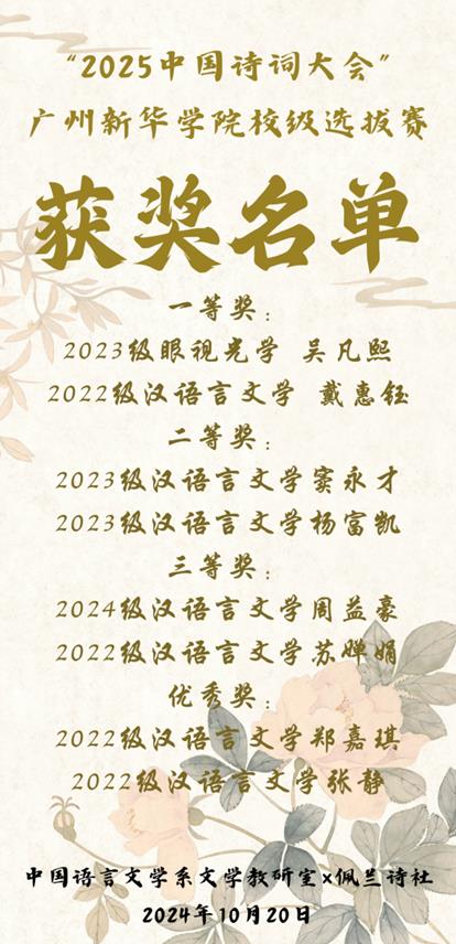 此次活动旨在积极响应《广东省教育厅 广东省语言文字工作委员会 关于举办“2025中国诗词大会”粤港澳大湾区选拔赛的通知》精神,进一步弘扬中华优秀传统文化,激发广大师生对诗词的热爱与传承。