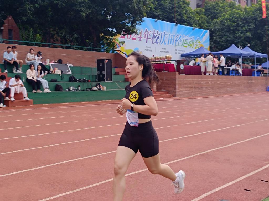 2022级柯荔同学在本次校运会中参与了女子800米和1500米竞赛项目。她表示“坚持就是胜利。”竞技体育给她带了很大的快乐,她对体育的热爱,使得她有毅力进行日复一日的训练,在赛场上绽放光彩。