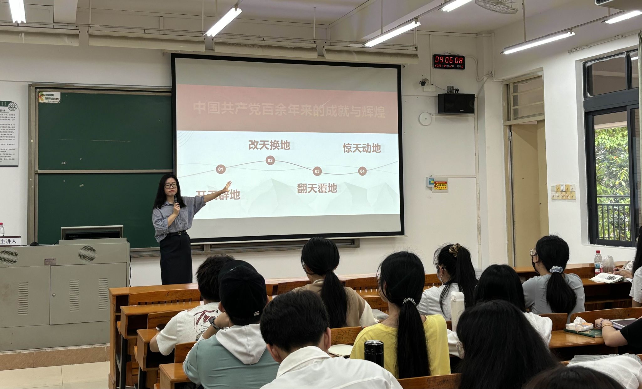 课程第一项,由学校党校教师刘艳芬带领大家回顾《党的光辉历程》。刘老师从“开天辟地—改天换地—翻天覆地—惊天动地”四个阶段,详细讲解了中国共产党百余年来的辉煌与成就,同时强调了学习党史的重要意义。她引用了“欲灭其国,必先灭其历史”的观点,提醒我们珍惜今天的幸福生活,铭记历史,将爱国情怀内化于心、外化于行。她鼓励在座的入党积极分子要承担起时代赋予的责任,坚守理想信念,加强思想建设,坚持爱党与爱国的统一。