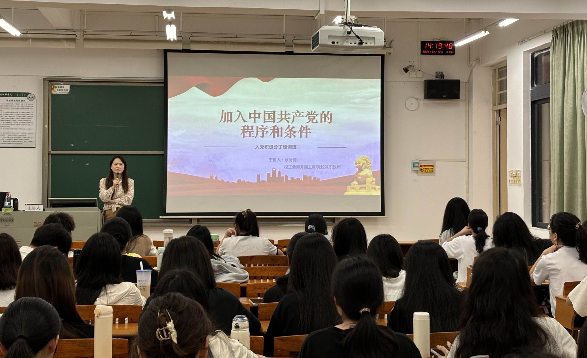 培训课程的第三项,由学校党校教师欧衍伽讲解《加入中国共产党的程序和条件》。欧老师将这部分内容划分为四个主要部分:“入党的基本条件、具体条件、入党程序的历史演变以及入党的具体程序”,并依据《中国共产党章程》对入党积极分子的教育培养进行了深入的阐释。她依据党章详细说明了申请入党的基本条件以及党员应享有的权利和应承担的义务,强调入党积极分子应努力履行党员的八项义务,学习并遵守党章,以此积极向党组织靠拢。同时她指出,党员的权利与义务是相互关联、不可分割的,履行党员义务和正确行使党员权利是成为合格党员的具体标准。她鼓励积极分子应始终以为人民服务为宗旨,通过实际的行动展现积极性,明确自己的目标和方向,努力成为优秀的榜样,并继续深化对党的理论知识的学习。最后,欧衍伽老师勉励大家,只要心中有目标,坚持不懈地努力,就能达到理想的彼岸。