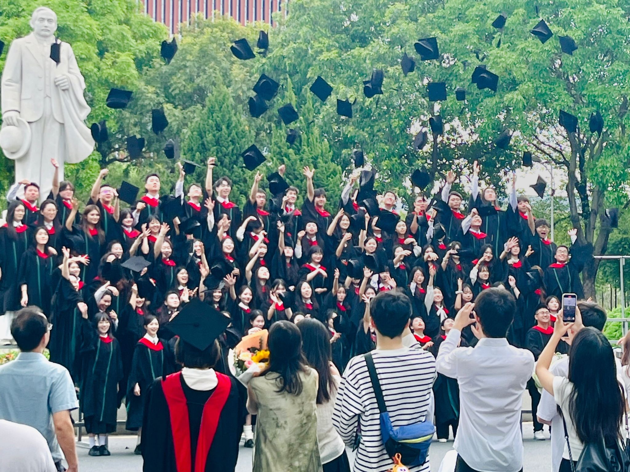 晨光微熹,校园已被青春的气息填满。毕业生们怀着雀跃的心情,仔细整理学士服的褶皱,精心打理着自己的着装,然后齐聚在庄严的中山像前,有序列队集合,眼神中满是对即将开始拍摄的毕业照的期待。
