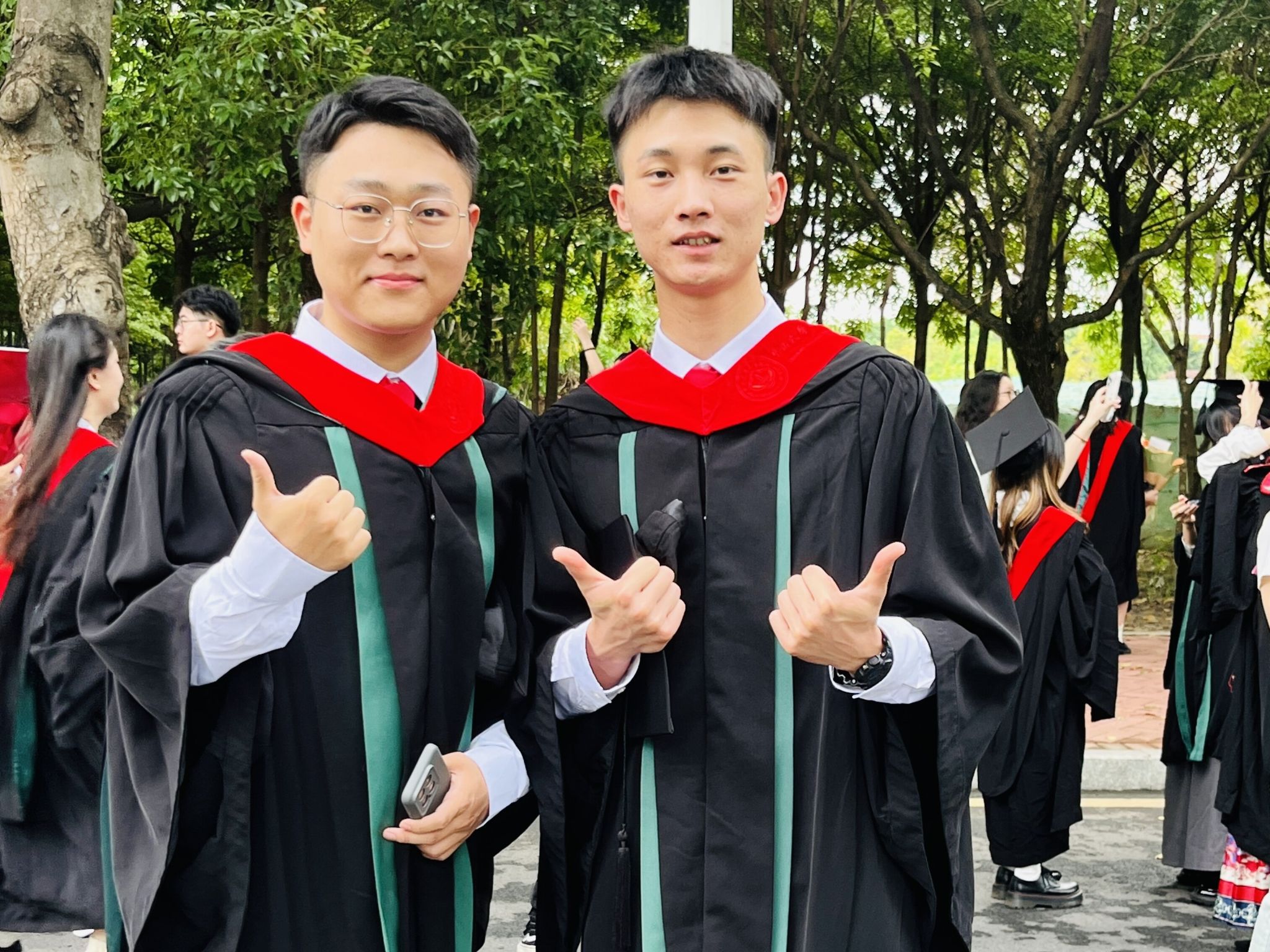 “今天毕业照拍摄总会让我想起考研时,雨天背着书包在泥泞小路上往返图书馆的日子。晚上路灯与月光交映,背着书包的自己仿佛承载着日月精华。想对一起拍照的同学朋友们说,大家都很优秀的人,希望无论在哪里,都能成为各自领域的超人!”
