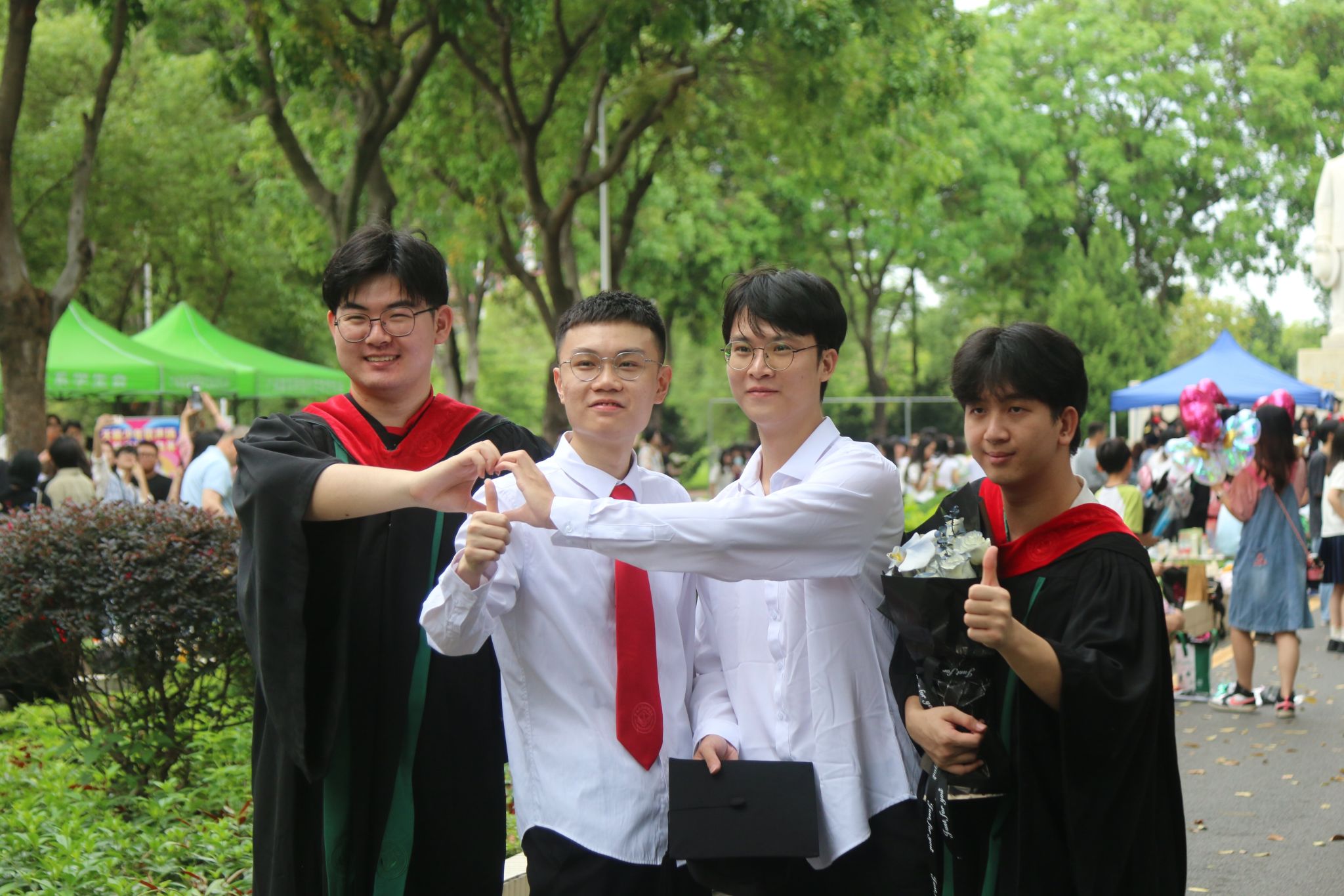 毕业照拍摄接近尾声,同学们驻足于教学楼、食堂前,静静凝望熟悉的角落。相机中定格的每一幅画面,无论是列队时的庄重,还是抛帽时的欢腾,都凝结着青春的炽热与纯粹。风掠过学士服的衣角,也拂动着离别的心绪。愿2021级中文学子珍藏这份记忆,以文字为桨、热爱为舵,在人生的航程中勇毅前行。无论未来走向何方,都能始终怀揣少年热忱,在各自的天地间绽放璀璨光芒。