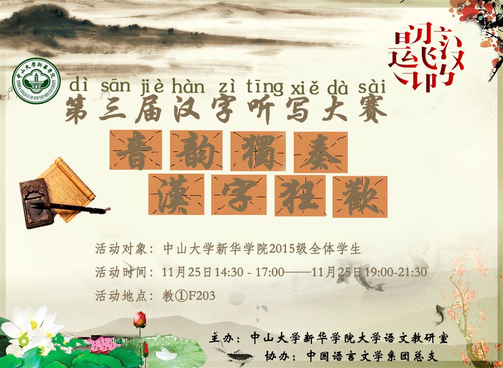 [活动预告]中山大学新华学院第三届“音韵独奏•汉字狂欢”汉字听写大赛
