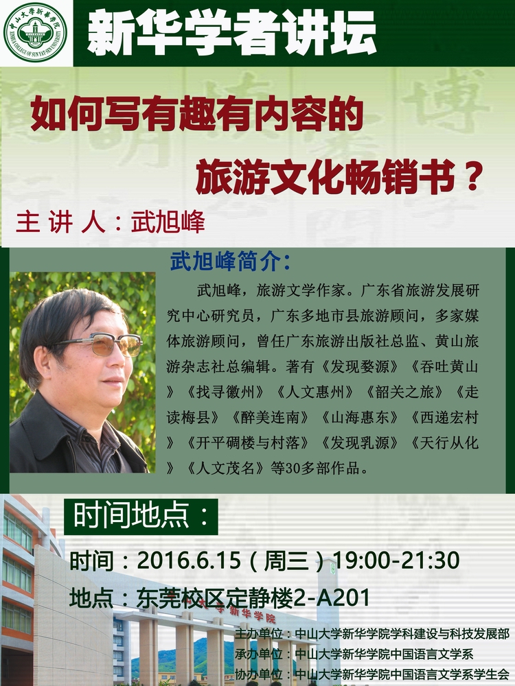 讲座题目:如何写有趣有内容的旅游文化畅销书?