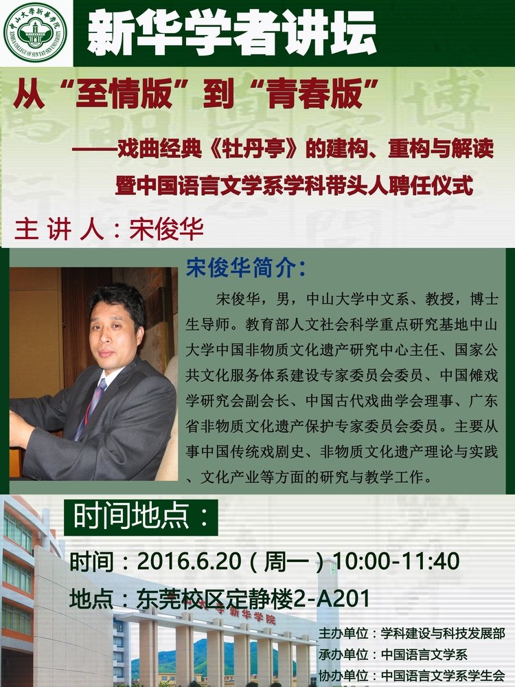 讲座题目:从“至情版”到“青春版”——戏曲经典《牡丹亭》的建构、重构与解读