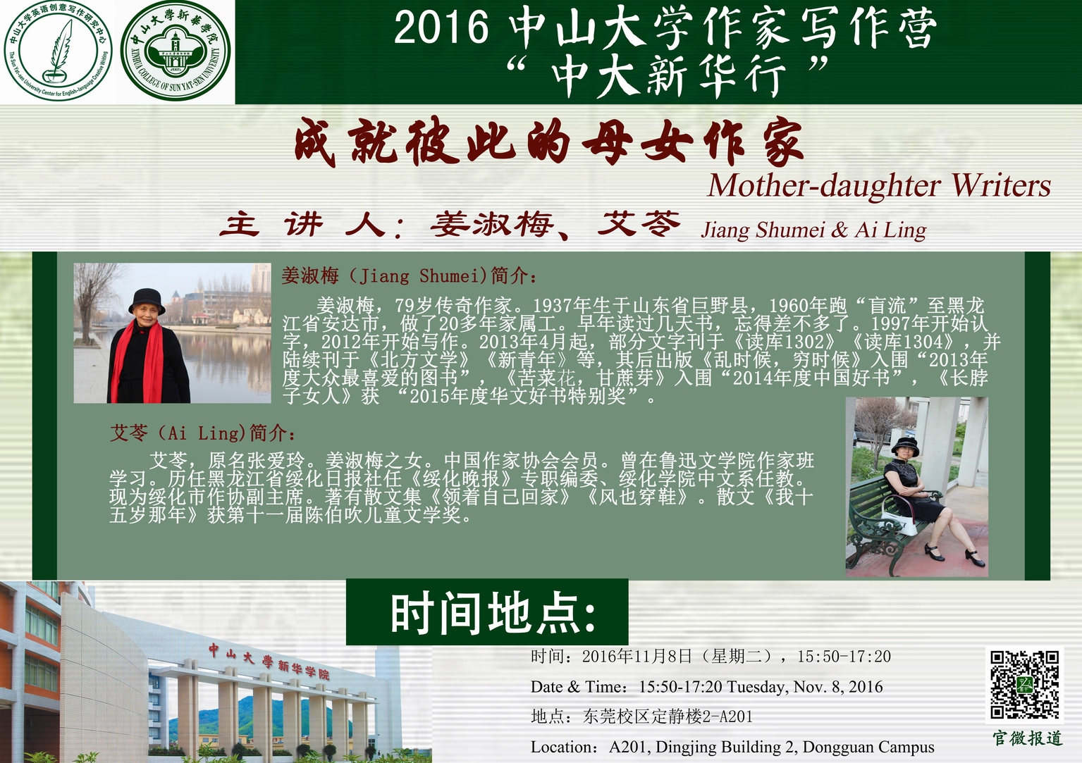 [2016国际作家写作营讲座预告]姜淑梅、艾苓:成就彼此的母女作家
