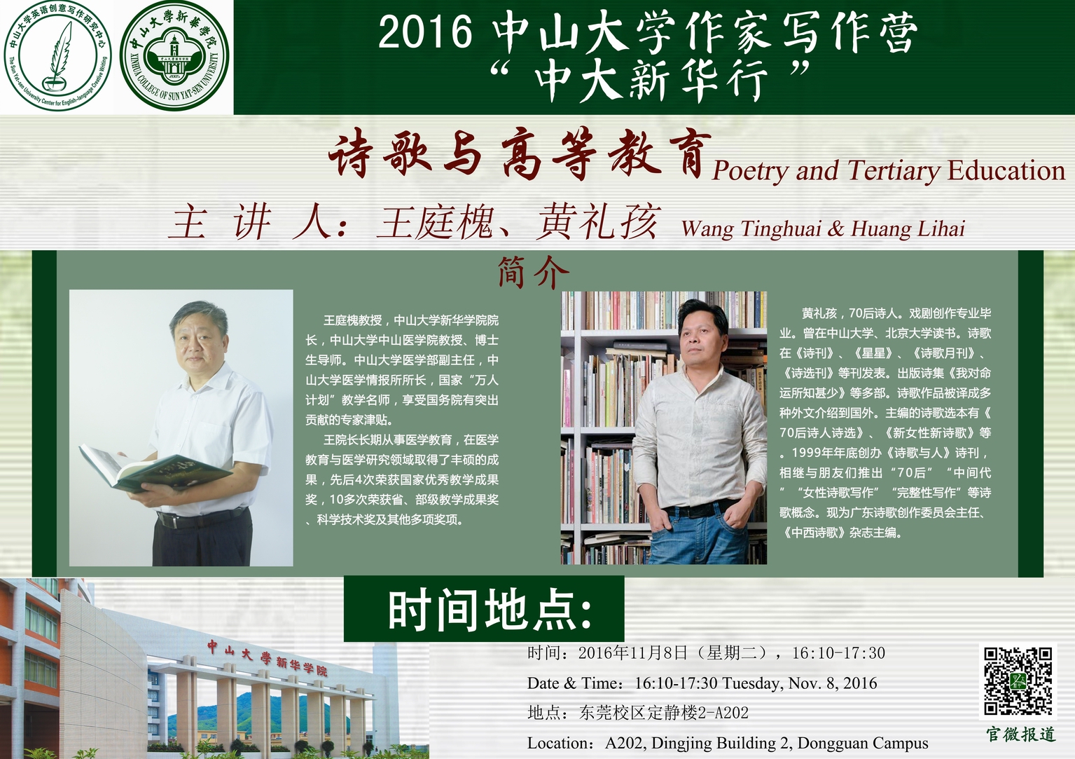 [2016国际作家写作营讲座预告]王庭槐、黄礼孩:诗歌与高等教育