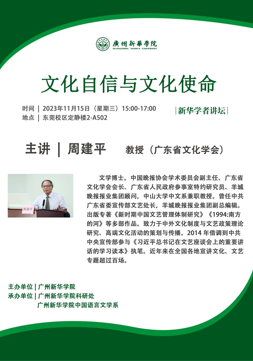 主讲:周建平(广东省文化学会会长,文学博士)