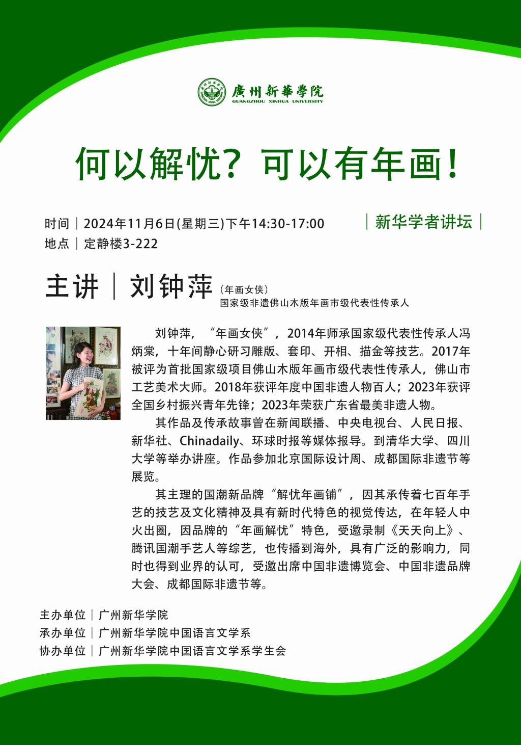 主讲:刘钟萍(国家级非遗佛山木版年画市级代表性传承人)