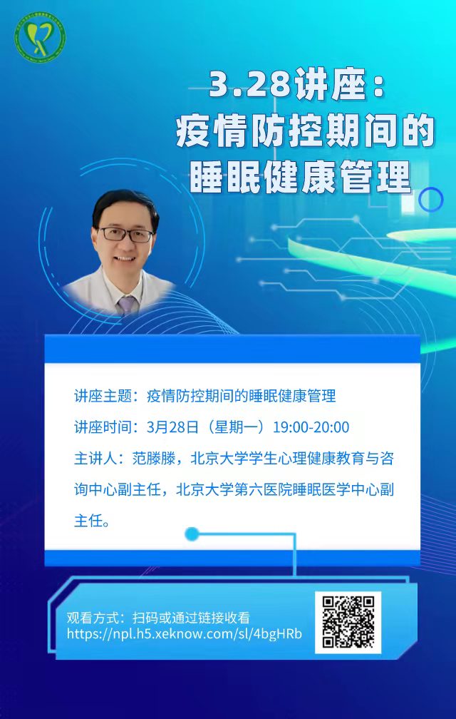 线上讲座 | 范滕滕:疫情防控期间的睡眠健康管理(3月28日)