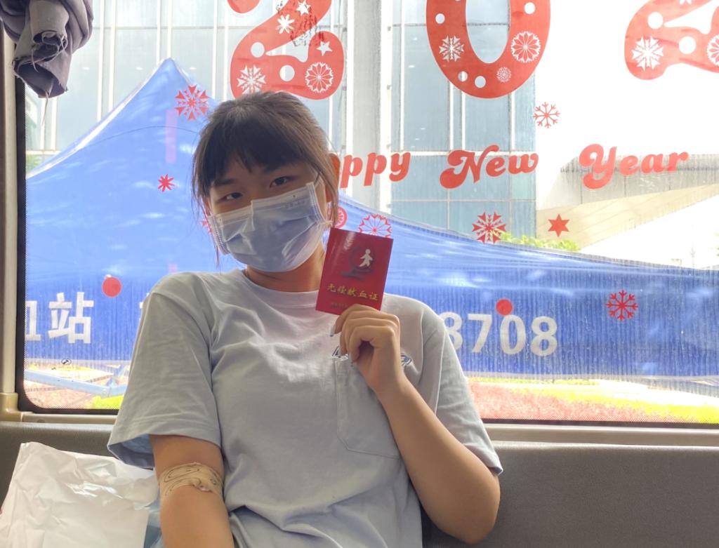 图1 文晴于2021年参加惠州市无偿献血